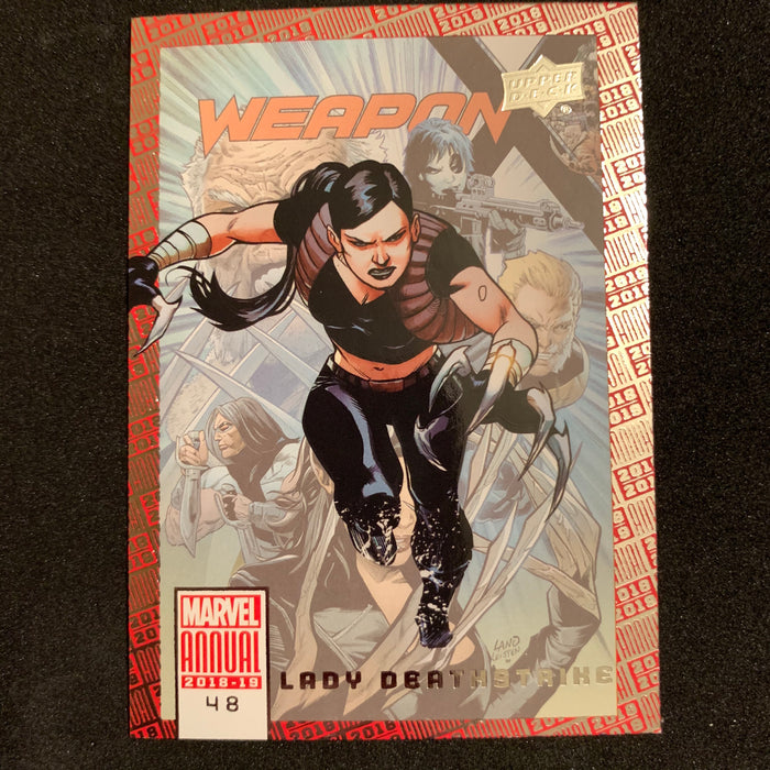 Click to expand Tap to zoom Marvel Annual 2018-19 - 048 - Lady Deathstrike by Upper Deck Sold out $0.49 | / 1 2 3 4 5 6 7 8 9 10+ Quantity Quantity Sold out Marvel Annual 2018-19 - The descendant of the original Marvel Universe Sets!